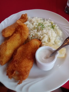Skoro jesteśmy nad jeziorem, to w naszym menu nie mogło zabraknąć ryby. Swoją zamówiłam w restauracji obok naszego kempingu dla naturystów i nie pożałowałam- była miękka i dobrze przyprawiona, a panierka podkreślała jej smak. Co prawda kosztowała nieco powyżej średniej, ale było warto. Niestety w tej miejscówce obsługa ani wystrój nas nie zachwycały. Mankament ten rekompensował naprawdę wyśmienity smak wszystkich dań: ryb, nadziewanych kotletów, deski mięs przyrządzonych na różne sposoby.